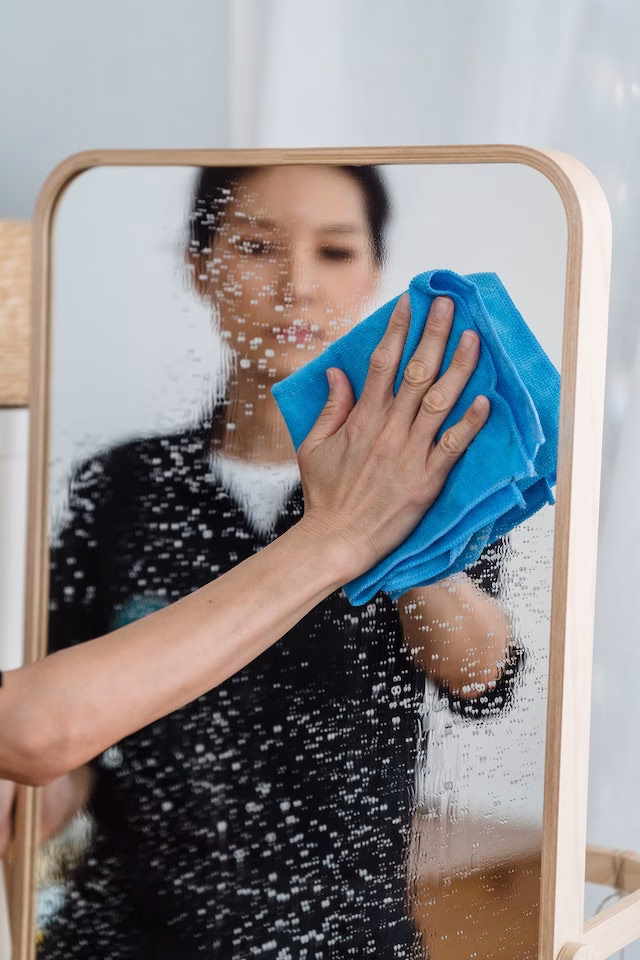 Möchten Sie nicht warten, bis sich die Temperatur wieder angepasst und sich der Beschlag auf dem Spiegel aufgelöst hat, können Sie diesen natürlich auch abwischen. Nutzen Sie dabei jedoch kein Handtuch. Hierbei laufen Sie Gefahr, dass Sie Schmutz auf der Oberfläche verteilen oder unschöne Schlieren hinterlassen. Verwenden Sie stattdessen einen fusselfreies, trockenes sowie sauberes Mikrofasertuch.