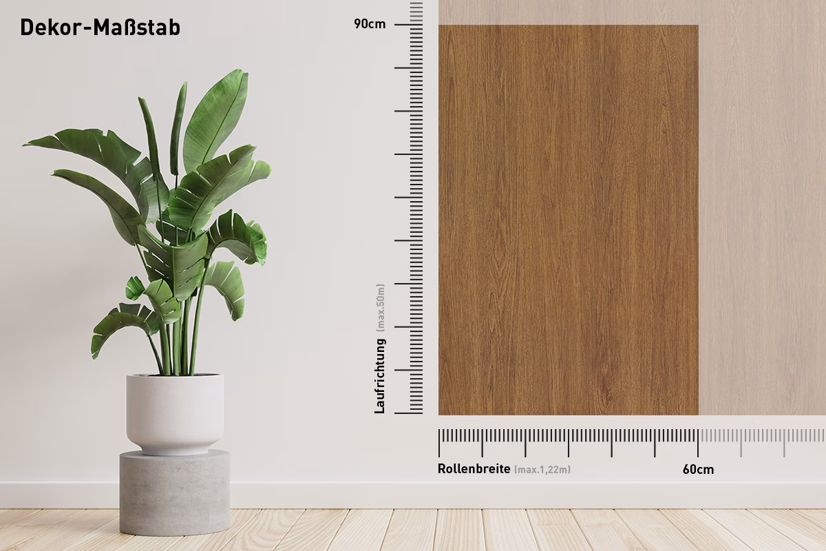 Das Dekor dieser Möbelfolie verläuft in Längsrichtung, sprich von oben nach unten (senkrecht). Achten Sie daher bei der Maßeingabe bitte darauf die Breite und Höhe nicht zu vertauschen, da sonst das Dekor um 90° gedreht liegt! Vergleichen Sie dazu bitte die nachfolgende Skizze: