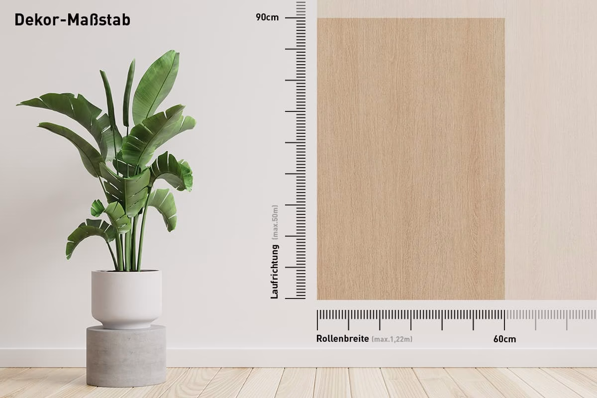 Das Dekor dieser Möbelfolie verläuft in Längsrichtung, sprich von oben nach unten (senkrecht). Achten Sie daher bei der Maßeingabe bitte darauf die Breite und Höhe nicht zu vertauschen, da sonst das Dekor um 90° gedreht liegt! Vergleichen Sie dazu bitte die nachfolgende Skizze: