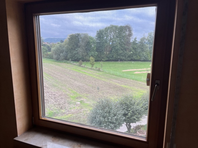 Es wird mit Holzofen geheizt und wir erhoffen uns im Winter eine weniger stark abkühlende Fensterfront durch die Folie.