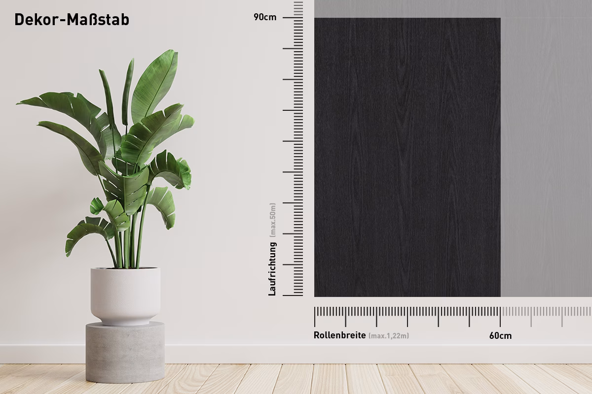 Das Dekor dieser Möbelfolie verläuft in Längsrichtung, sprich von oben nach unten (senkrecht). Achten Sie daher bei der Maßeingabe bitte darauf die Breite und Höhe nicht zu vertauschen, da sonst das Dekor um 90° gedreht liegt! Vergleichen Sie dazu bitte die nachfolgende Skizze: